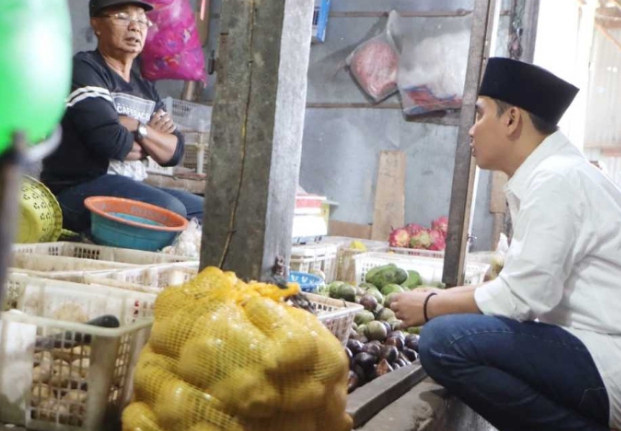 Ketika blusukan ke pasar tradisional , Gus Barra tampil sederhana dengan kemeja putih menyapa satu per satu pedagang di lapak mereka dan sesekali ajak dialog dengan pedagang maupun pembeli.