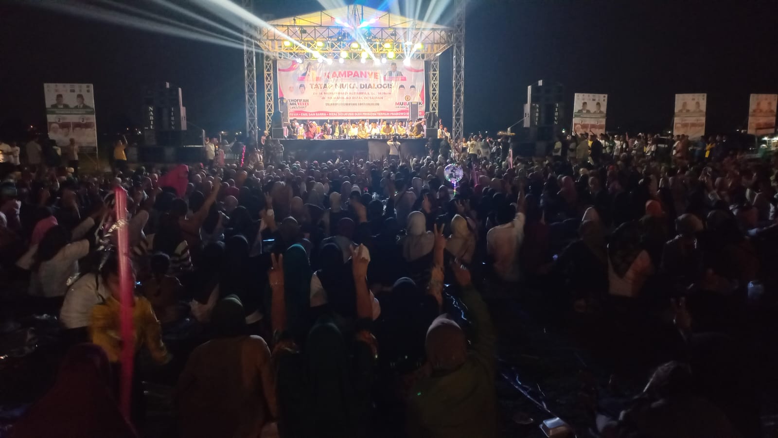 Massa yang mengikuti Kegiatan kampaye tatap muka dialogis Mubarok di Lapangan Jolotundo Jetis, berdesakan namun berjalan dengan aman dan kondusif. (Zen / rl)