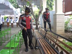 Petugas kepolisian saat lakukan penyirisan pengamanan salah satu gereja di Kota Mojokerto