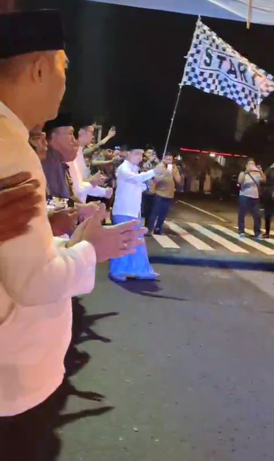 Pemberangkatan ditandai dengan pengibaran bendera oleh Bupati Gus Barra sebagai simbol pelepasan, yang disaksikan seluruh tamu dan undangan.