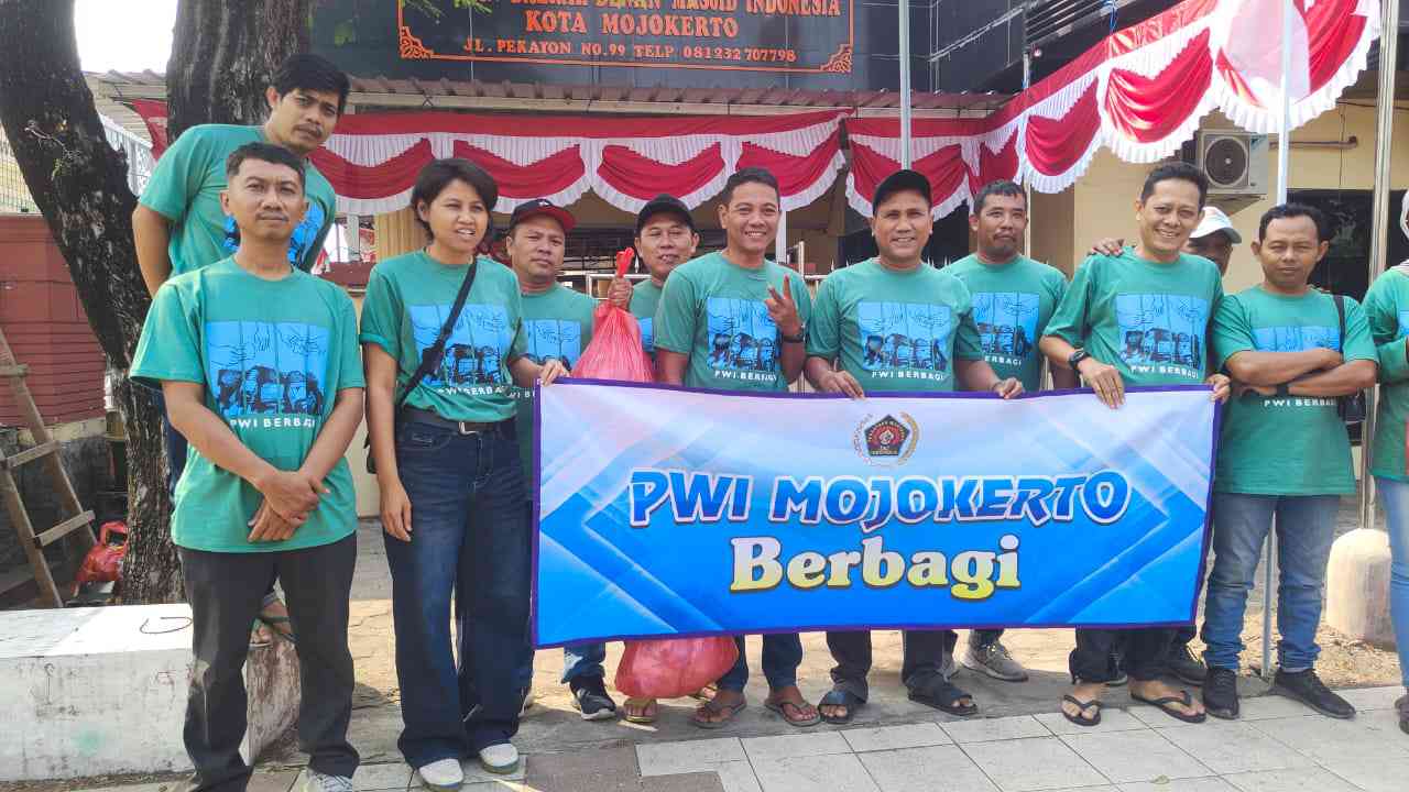 DIGDAYA NEWS. COM/ MOJOKERTO, – Mengusung semangat kepedulian sosial, Persatuan Wartawan Indonesia (PWI) Mojokerto kembali menjalankan kegiatan rutin bertajuk Jumat Berkah. Dalam agenda yang berlangsung pada Jumat pagi (8/8/2025), para jurnalis tidak hanya membagikan nasi bungkus kepada masyarakat, namun juga tampil kompak mengenakan kaos khusus berwarna hijau bertuliskan PWI Berbagi.