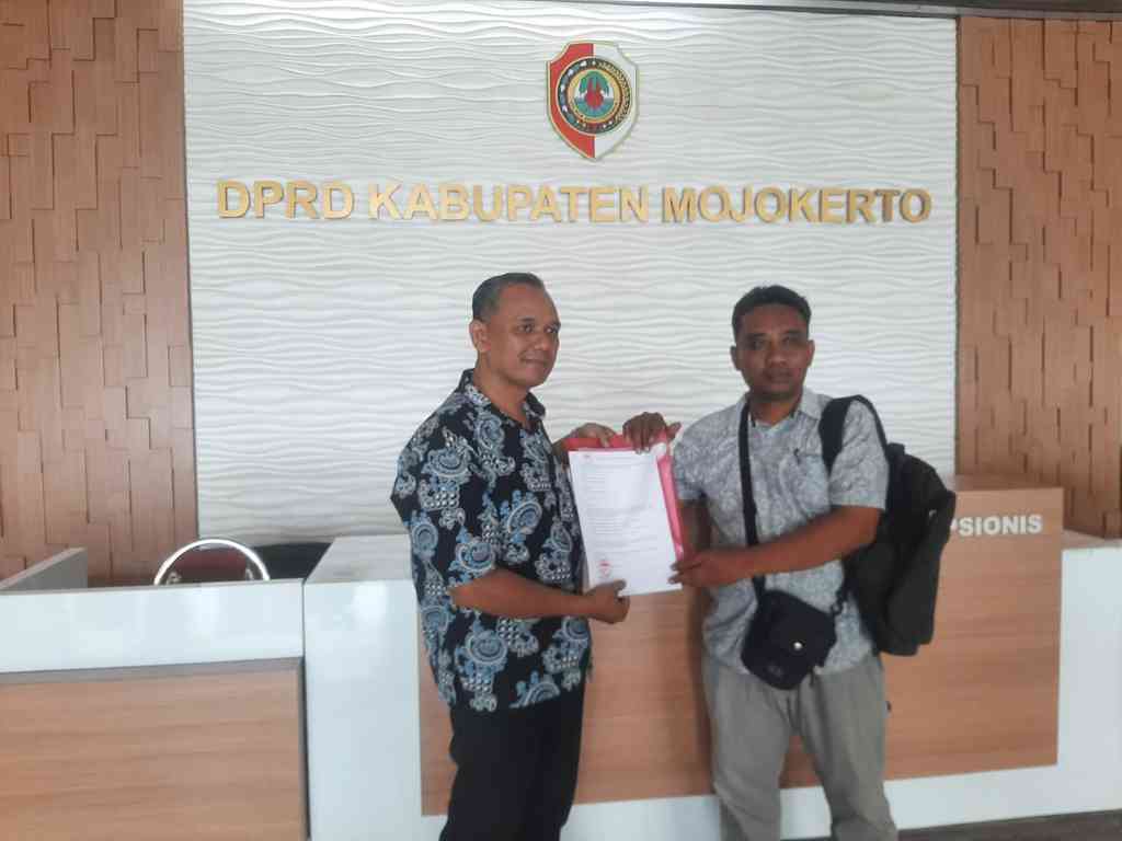 Staf sekretariat DPRD Kabupaten Mojokerto telah menerima surat permohonan tersebut dan menyatakan bahwa dokumen sudah dicatat masuk. Proses selanjutnya menunggu disposisi dari Ketua DPRD untuk penjadwalan rapat dengar pendapat.