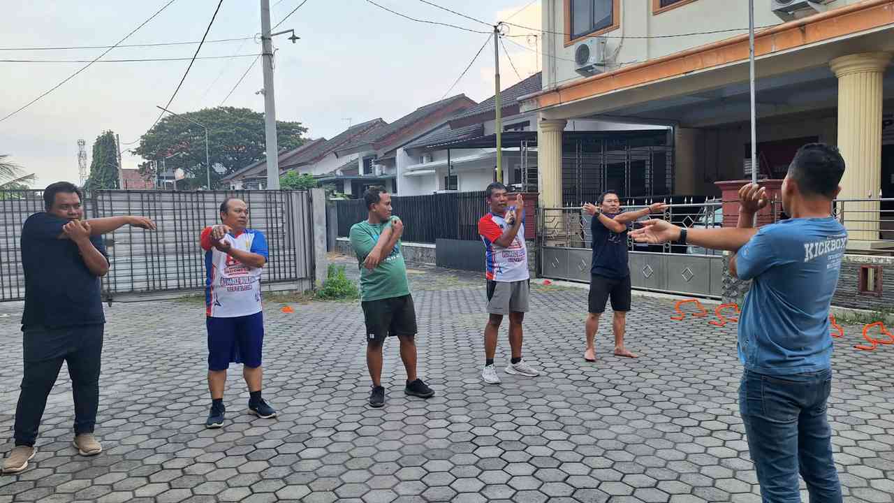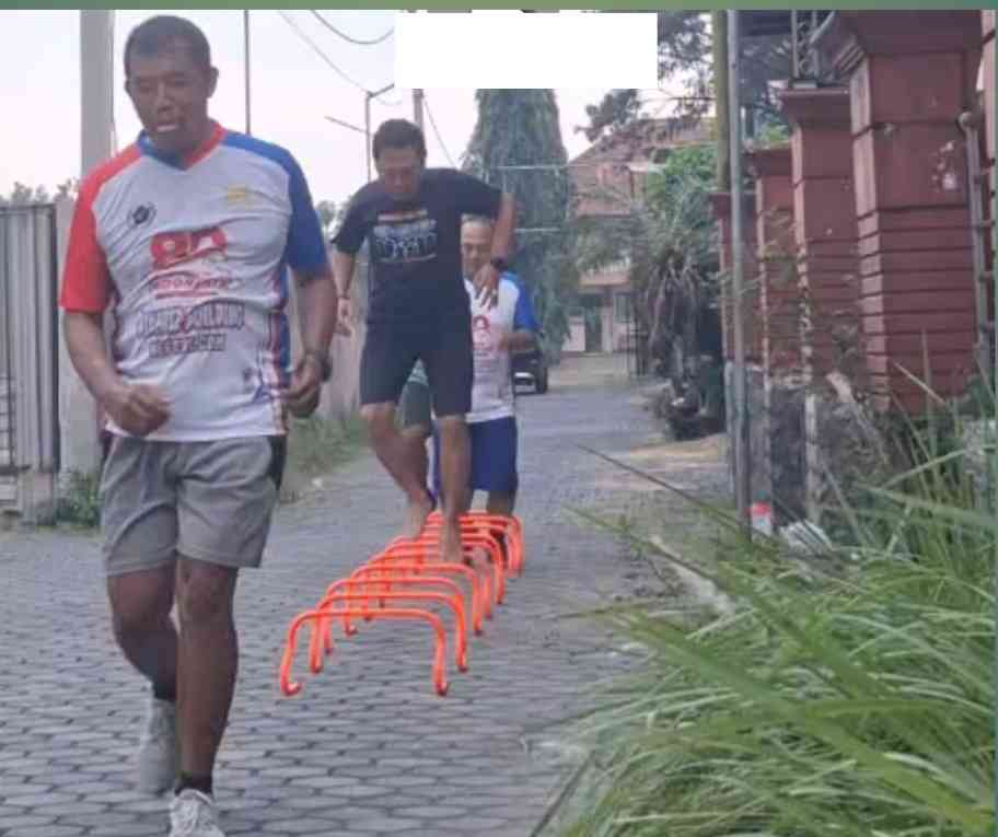 Latihan intensif digelar di depan sekretariat PWI Mojokerto Raya, Jalan Pekayon, Kecamatan Kranggan, Kota Mojokerto, Senin (15/9/2025). Sesi latihan dipimpin langsung pelatih Susilo dengan fokus pada penguatan fisik, pernapasan, hingga penguasaan bola. Ketua PWI Mojokerto Raya, Aminuddin Ilham, ikut turun sebagai kapten tim dalam persiapan tersebut.