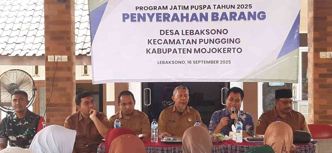 DIGDAYA NEWS. COM/ MOJOKERTO – Sebanyak 42 Keluarga Penerima Manfaat (KPM) di Desa Lebaksono, Kecamatan Pungging, mendapatkan bantuan barang dari program Jawa Timur Pemberdayaan Usaha Perempuan (Jatim Puspa) tahun 2025. Penyaluran bantuan berlangsung di Balai Desa Lebaksono, Selasa (16/09/2025).