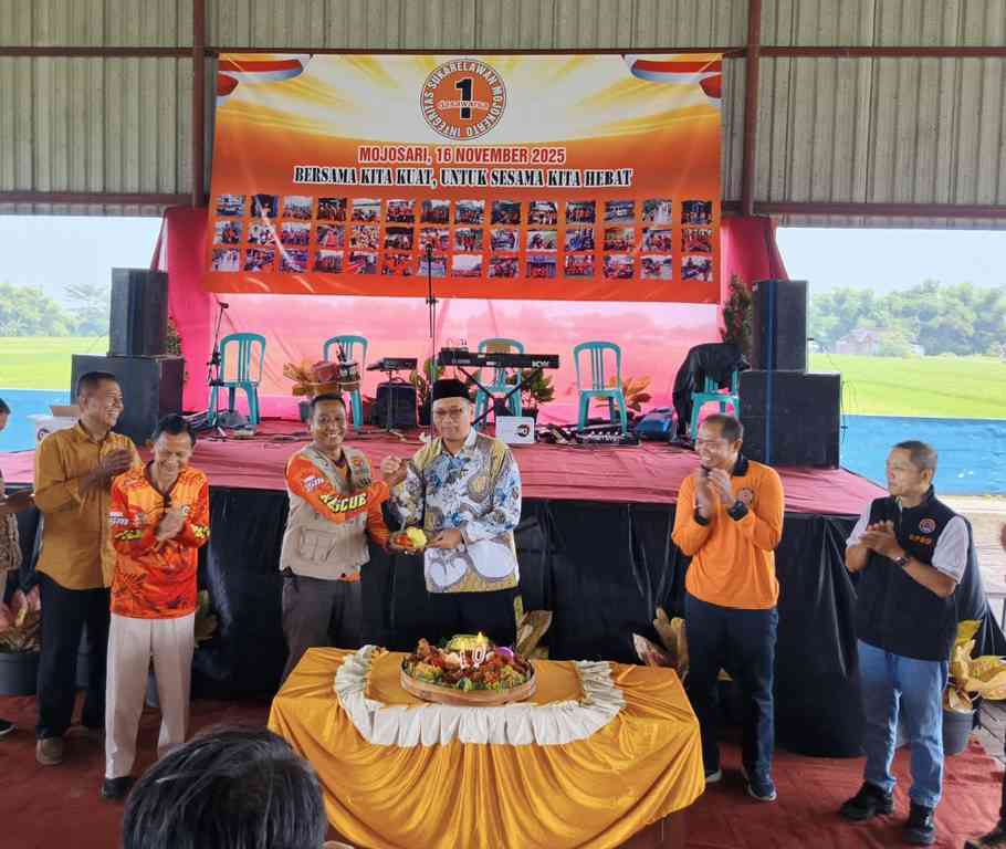 DIGDAYA NEWS. COM/ MOJOKERTO — Relawan Integritas Sukarelawan Mojokerto (ISM) menandai perjalanan 10 tahun pengabdiannya dengan menggelar doa bersama dan pemotongan kue ulang tahun di Gedung Serbaguna Pusat Oleh-Oleh Desa Jotangan, Mojosari, Minggu (16/11/2025) pagi.