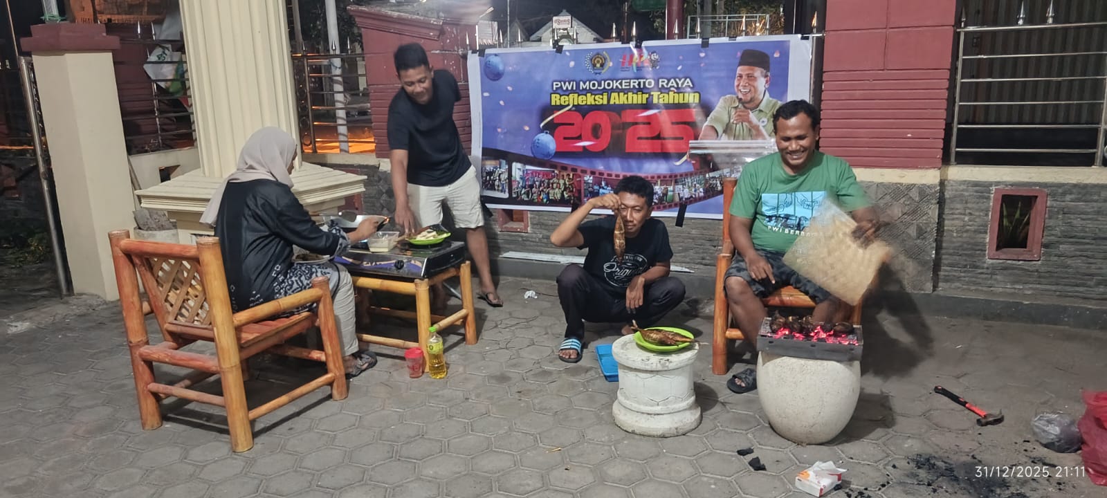 Refleksi akhir tahun berlangsung dalam suasana santai namun penuh makna. Kebersamaan tampak kental saat seluruh peserta terlibat dalam agenda bakar ikan bersama, yang dimaknai sebagai wujud persatuan, kekompakan, dan soliditas insan pers Mojokerto Raya.