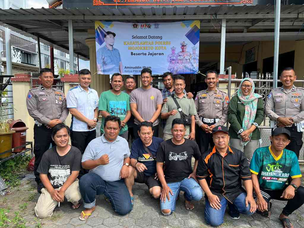 Kedatangan AKP Galih yang didampingi jajaran Pejabat Utama (PJU) Satlantas disambut hangat oleh pengurus dan anggota PWI Mojokerto Raya di sekretariat yang berlokasi di Jalan Raya Pekayon, Kecamatan Kranggan, Kota Mojokerto. Pertemuan berlangsung dalam suasana santai dan penuh kekeluargaan.