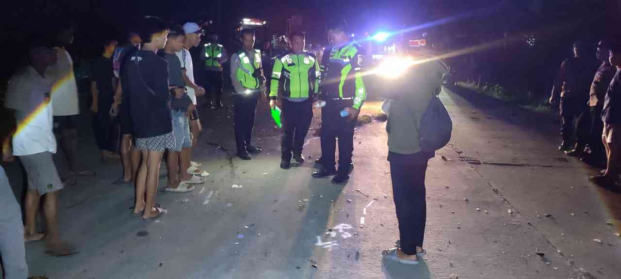 Petugas kepolisiaan saat olah TKP, tabrakan sebabkan dua orang meninggal