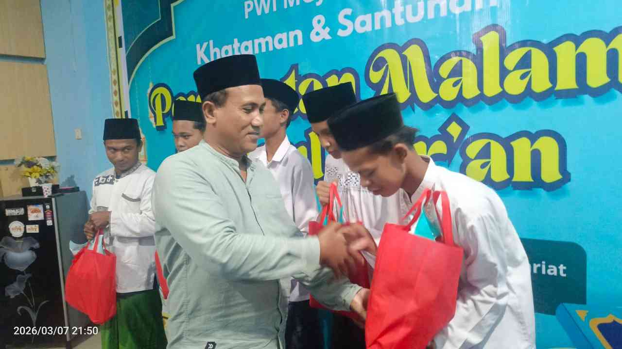 Acara berlangsung di Sekretariat PWI Mojokerto, Jalan Raya Pekayon No. 99, Kecamatan Kranggan, Kota Mojokerto, Sabtu (7/3/2026). Kegiatan ini dihadiri Ketua PWI Mojokerto Aminuddin Ilham bersama pengurus dan anggota PWI Mojokerto, serta para santri TPQ Darul Hikmah.